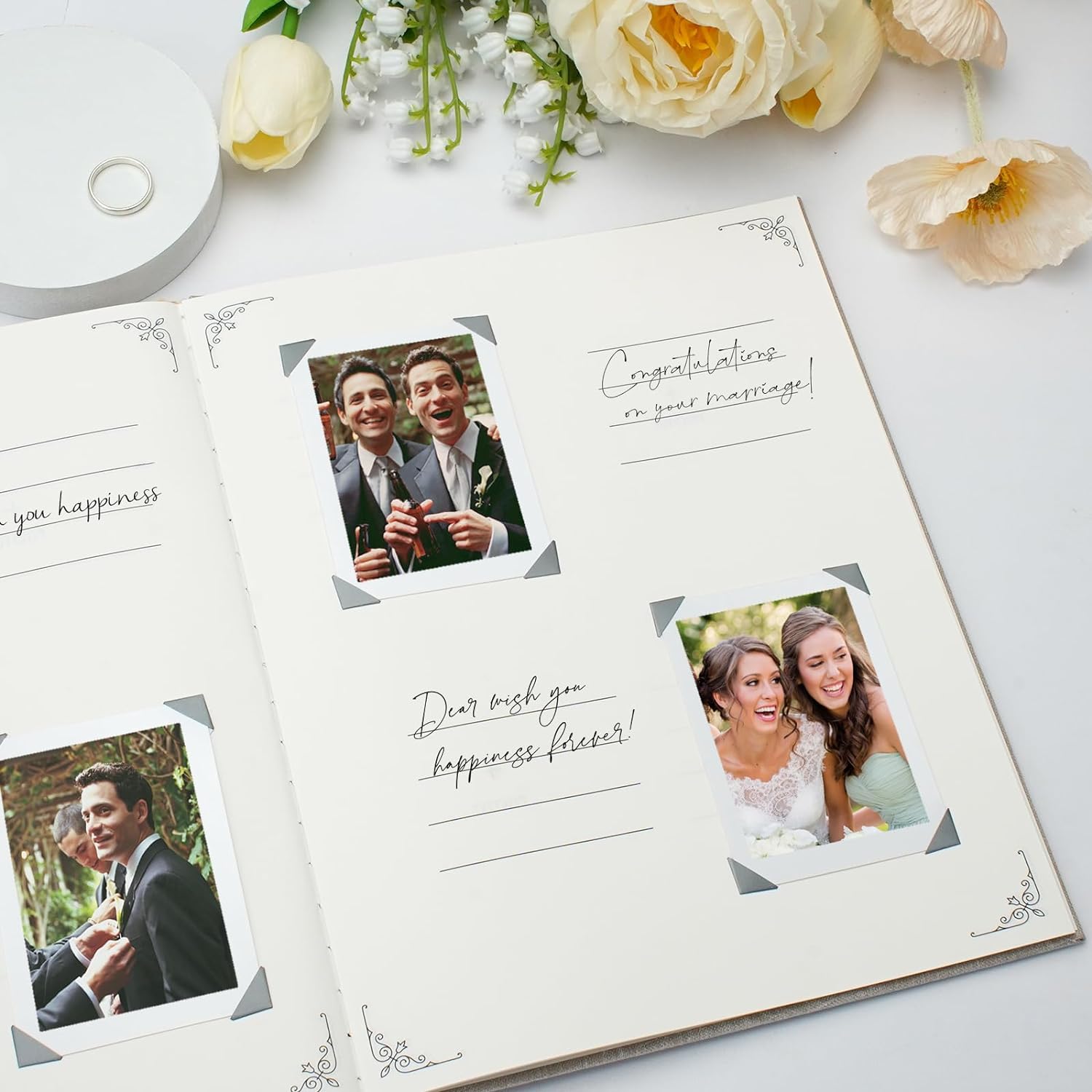 - Large Capacity: The inside pages of the guestbook are beautifully printed, and each page has plenty of space for 2 guests to paste Polaroid photos and leave their wishes, with a total of 60 sheets/120 pages for up to 240 guests' wishes and photos